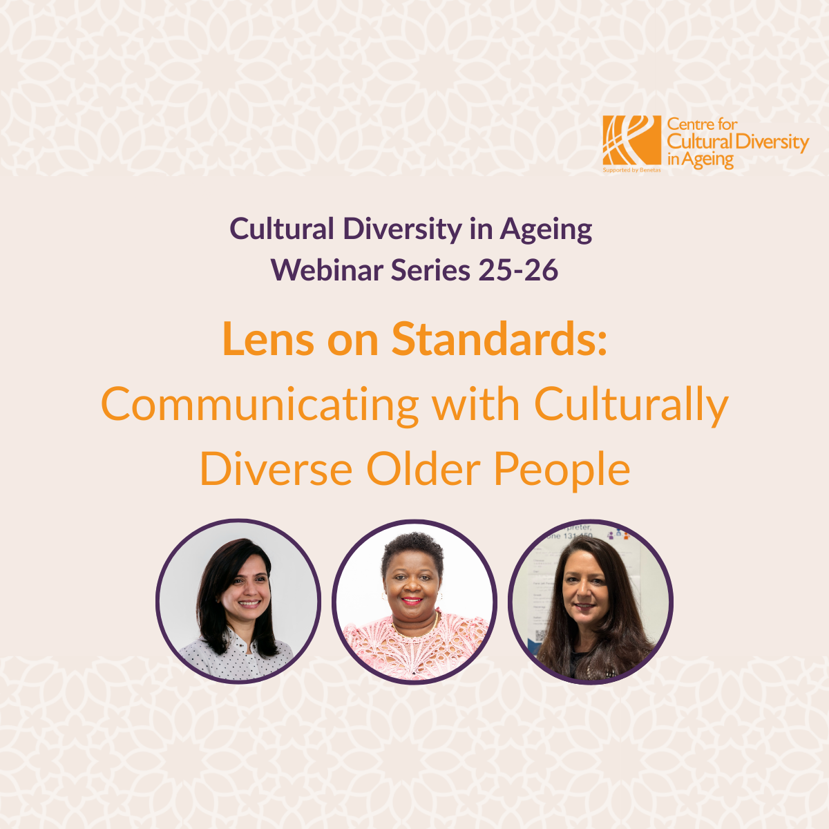 The Centre for Cultural Diversity in Ageing, funded by the Department of Health and Aged Care under the PICAC program and supported by Benetas, provides expertise in culturally inclusive policies and practices for aged services.